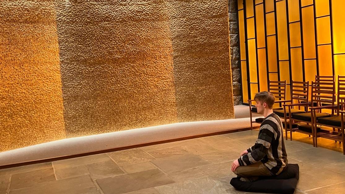 Because the space is intended for use by those of any religious background — or none — the Christian cross usually sits behind the reredos. Upon request the Christian cross can be placed on the reredos for specific meetings, prayers and events. This provides the space with the flexibility to serve all visitors, regardless of their religious affiliation.