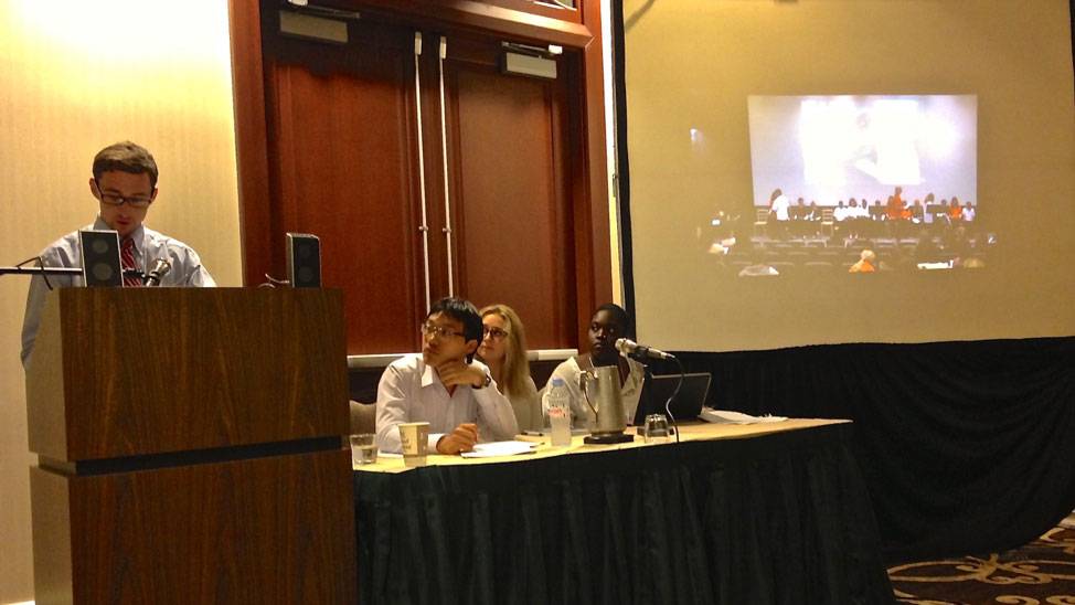 On May 29, 2015, students from the FRE/ALST 226 class, served on a panel at the Caribbean Studies Association Conference in New Orleans, Louisiana. The students included (left to right) Matthew Kavanagh ’17, Linh Le ’18, Laine Barrand ’17, and Nicole Jackson ’18.