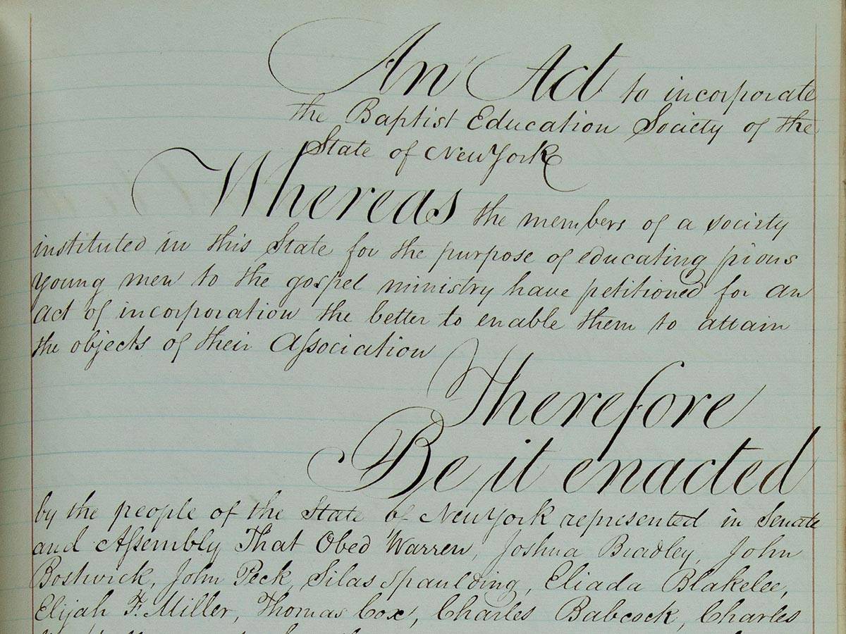 On March 5, 1819, the New York State Assembly granted a charter to the Baptist Education Society of New York, formally founding the institution that would become Colgate University. That day was the fulfillment of the vision set forth in the well-known story of 13 men gathering with 13 dollars and offering 13 prayers in Olmstead House.