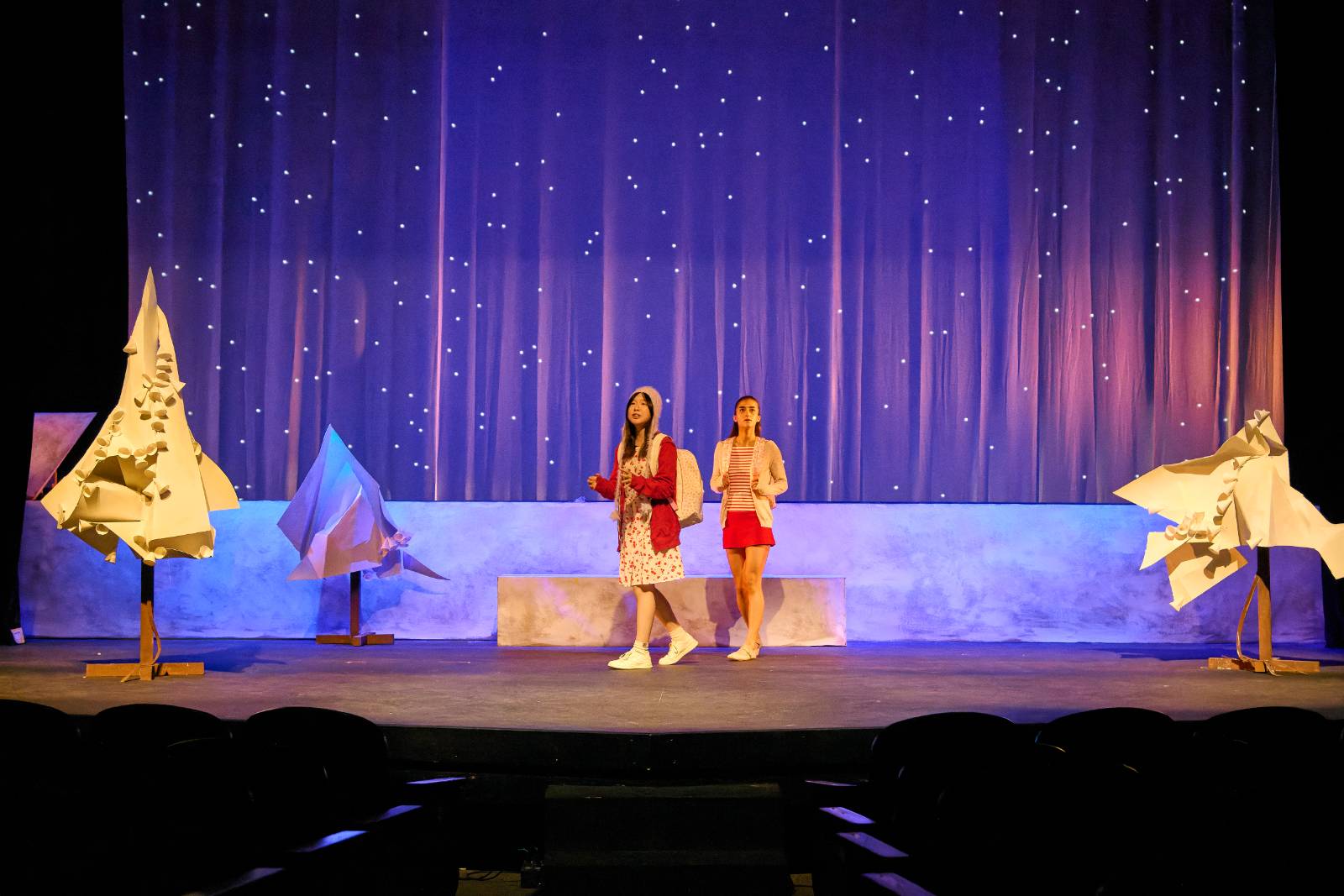 Created and performed by the THEA 359 Theater for Young Audiences class, the play invites young and old to think about authenticity and wonder. Hazel wants to write a “perfect” story — don’t we all? only to discover that truth can be sometimes, if not always, more than perfection and that an original creative act rests equally on both imagination and inner truth. An origami world, fairies, spirits, a fish, and four brave little girls help Hazel see what it takes to tell a story.