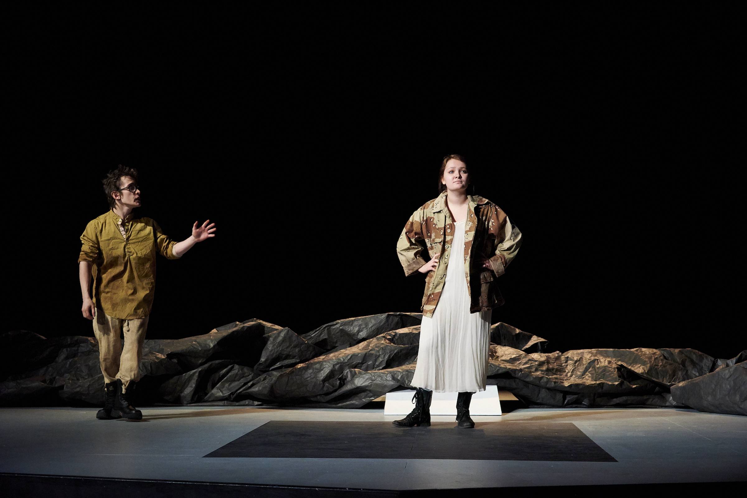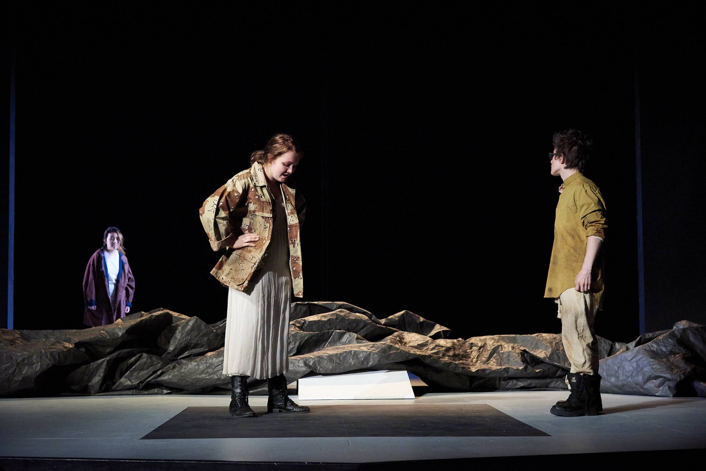Far Away, written by Caryl Churchill, first staged in 2000 at the Royal Court Theatre, depicts human survival in a dystopian world. Four characters and a large ensemble face the reality of what was feared the most, at the time. In staging Colgate University’s spring 2019 production, we cannot avoid the question: how far are we from far away?