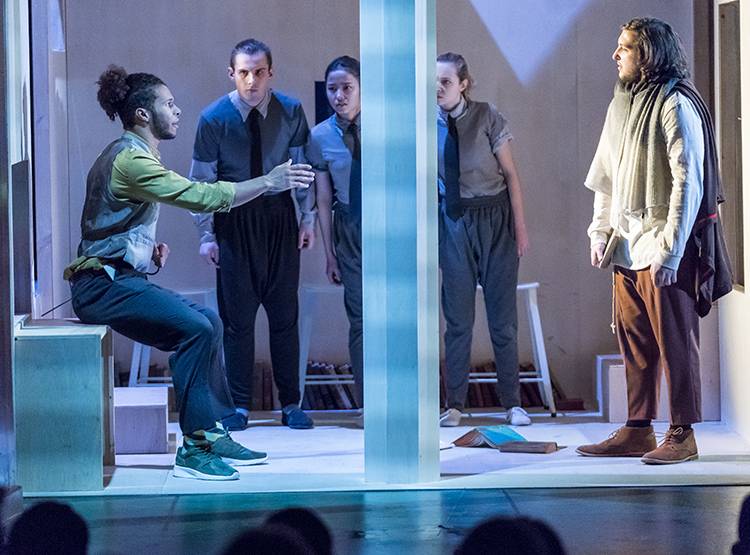 “I dreamt my lady came and found me dead.” It is not the obsession with the dead and thus (un)dead that Melody Bates asks of us in her comedy R & J& Z, but I find it is the obsession with the dream, the moment of transition between two worlds. This new play before us erupts out of Shakespeare’s tumultuous, violent love story and brings forth a world with the logic and physics of the dream. A dream where the familiar blows into the absurd and the nightmare, for all too understood reasons, is reality. What choices are we bound to make? Are we bound by our choices? What holds us in place? Can we escape our bonds? Are we bound to have them follow and consume our world and one another? Might we prove a path that breaks from form to reveal a light, a great lantern, a shiny place of our own making with harmony and beauty? Using Shakespeare’s Romeo and Juliet as a springboard Bates tackles the high and low, brings our collective drive for shock and feeling much closer for us to see because these days what is on our screens in front of us is all we know.