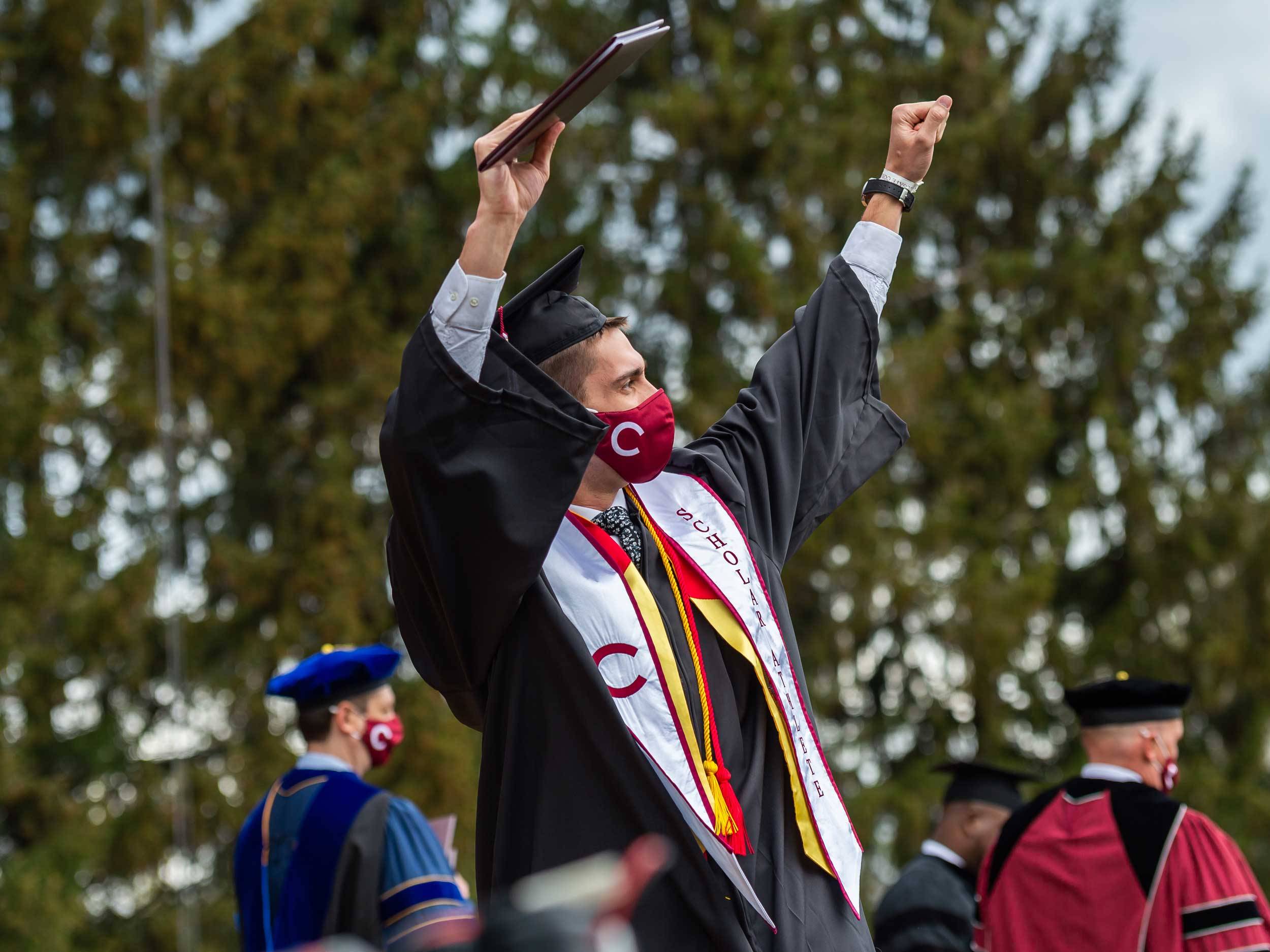 When photographing Commencement 2021, this particular image stuck out to me. This graduate was quite celebratory after crossing the stage, and I felt it captured the spirit felt by many that we had made it to commencement despite the odds we faced during the pandemic.