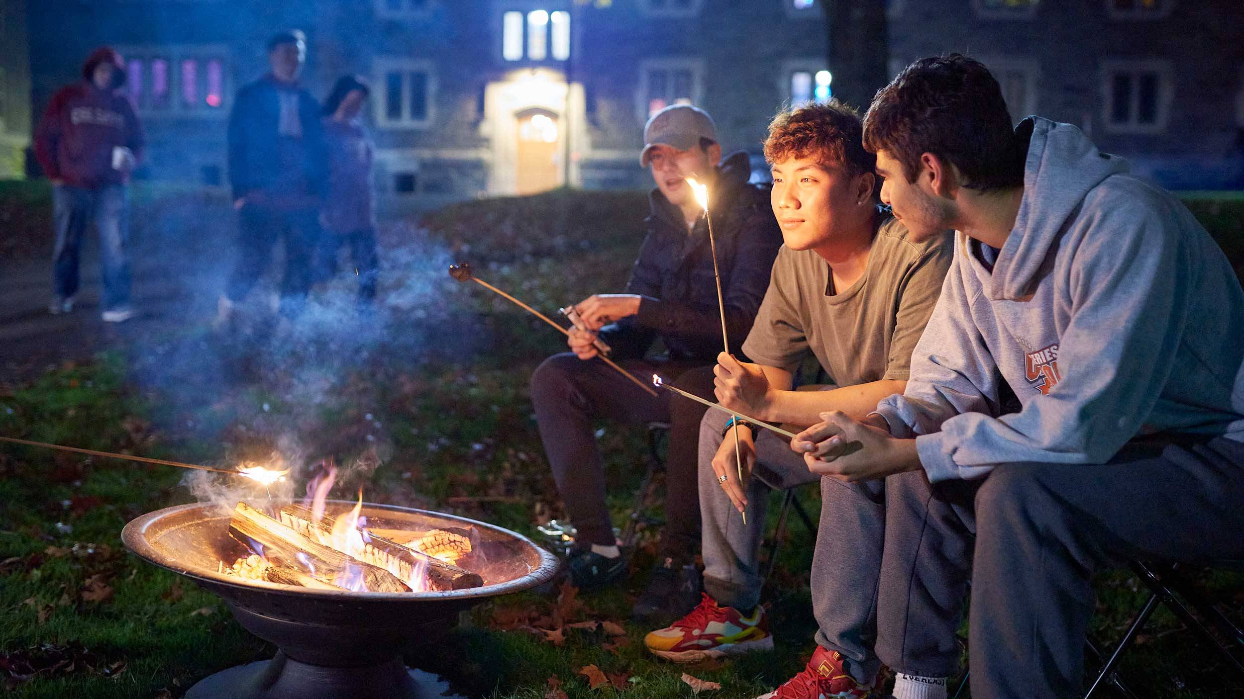 Photography is often about how composition, human expression, time of day, and lighting come together to capture a mood or create a feeling. I enjoyed this image, made by former Colgate University photographer Andy Daddio, of a bonfire during Family Weekend — specifically the sense of community seen in the image along with the warm glow of the fire and hazy effect of the smoke.
