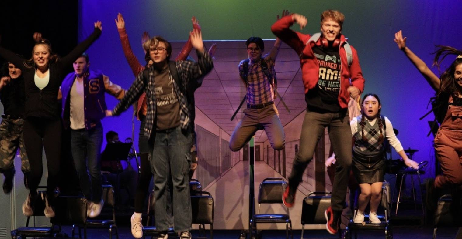 Corrigan performing in Masque & Triangle’s Be More Chill musical in 2024