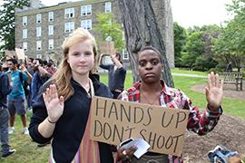 Inspired by nationwide demonstrations in which people put both hands up in the air to the slogan “Hands Up, Don’t Shoot,” the event was organized by Kori Strother ’15 and Melissa Melendez ’14.