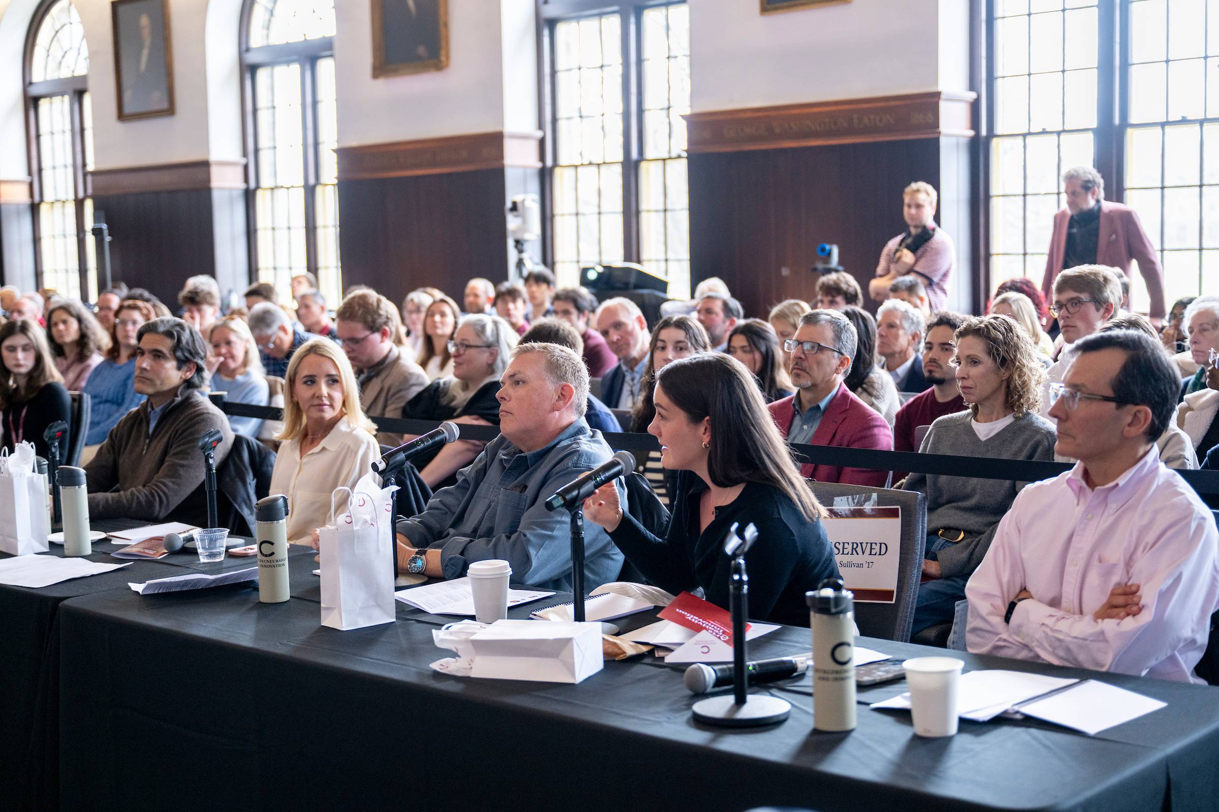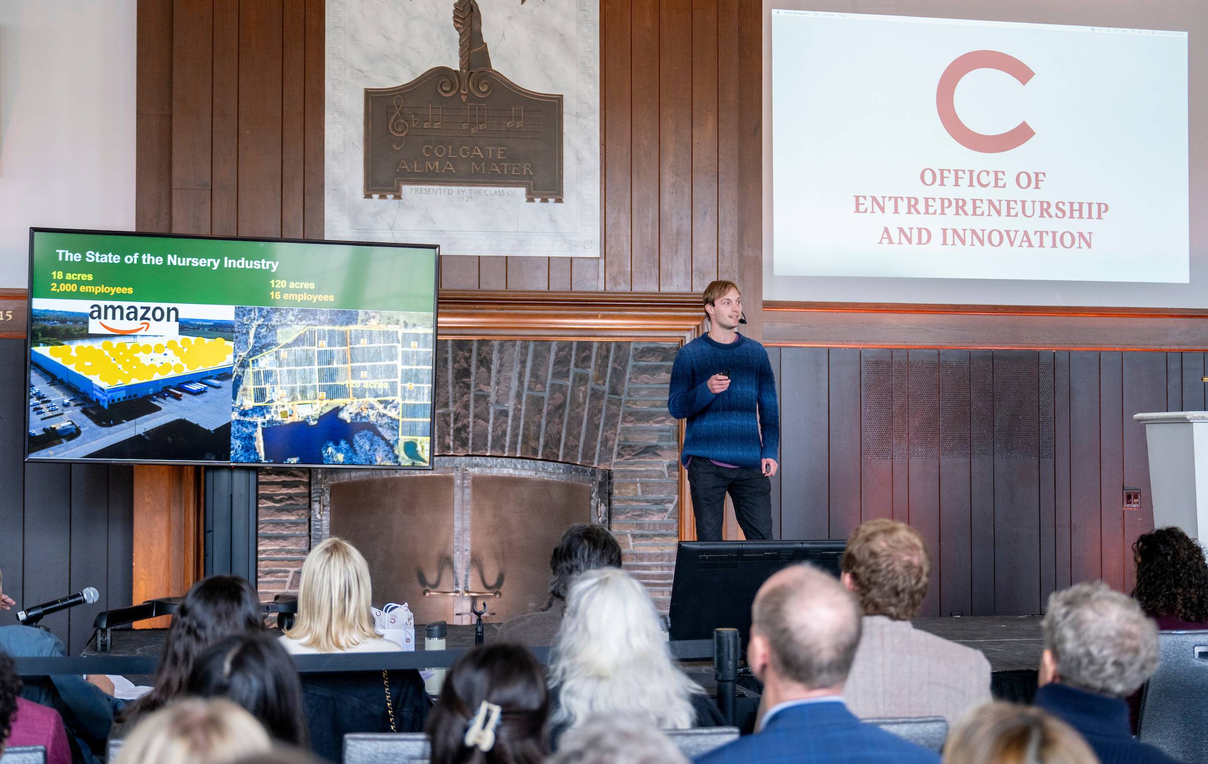 Gus Coldebella ʼ91, chief legal officer of Castle Island Ventures, moderated the panel of entrepreneurs, including the Colgate University Entrepreneur of the Year Viraj Puri ’03, co-founder and chief executive officer of Gotham Greens. Other panelists included Lila Sullivan ’17, president and co-founder of Flourish Plant; Sara Brooks, co-founder of Goldilocks; and Heffernan.