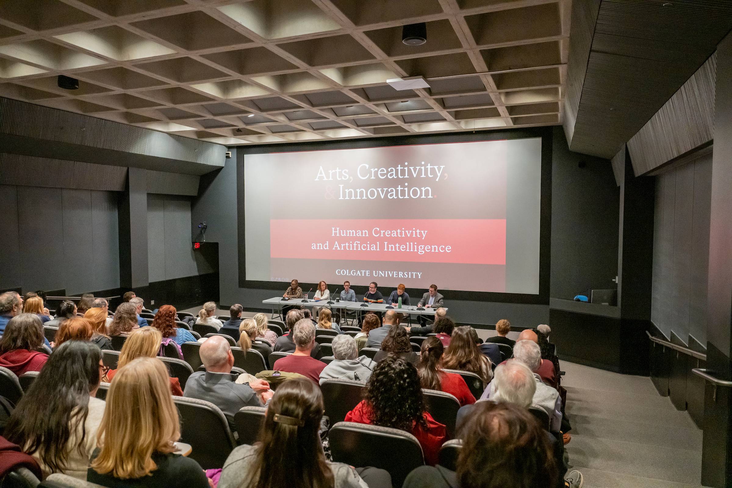 Throughout the weekend, alumni and faculty led panel discussions on the intersection of creativity and industry. The panelists spoke about the seeds that were planted during their undergraduate studies, their professional journey after Colgate, and the implications of artificial intelligence for creative careers. They gave career advice to the students in attendance. Many of the panelists shared their unconventional entries into the field, highlighting the fact that professional success often follows a period of trial and error.