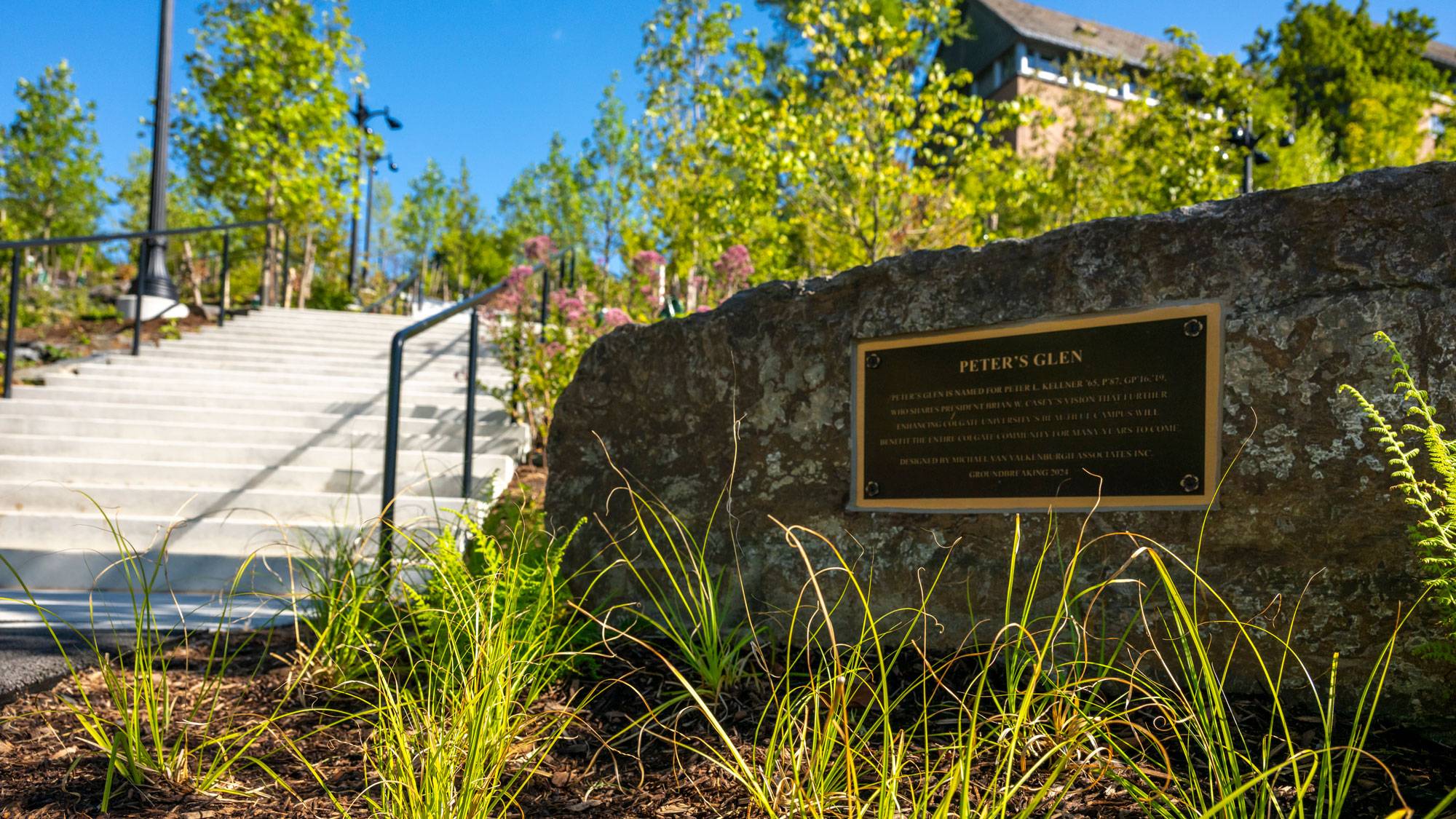 Peter’s Glen is just the latest example of Peter Kellner’s extraordinary generosity, which has included the funding of the Peter L. Kellner Third Century Chair in Philosophy, Politics, and Economics and the Peter L. and Maria T. Kellner Endowed Chair in Arts, Creativity, and Innovation. He has also supported financial aid by funding the Peter L. Kellner ’65 Family Endowed Scholarship Fund, among other campus projects. During Reunion 2025, Colgate announced the launch of the West Campus Initiative, made possible in part through a new $60 million gift from Kellner — the largest single gift in Colgate history. That support has helped bring total fundraising in The Campaign for the Third Century to more than $745 million.