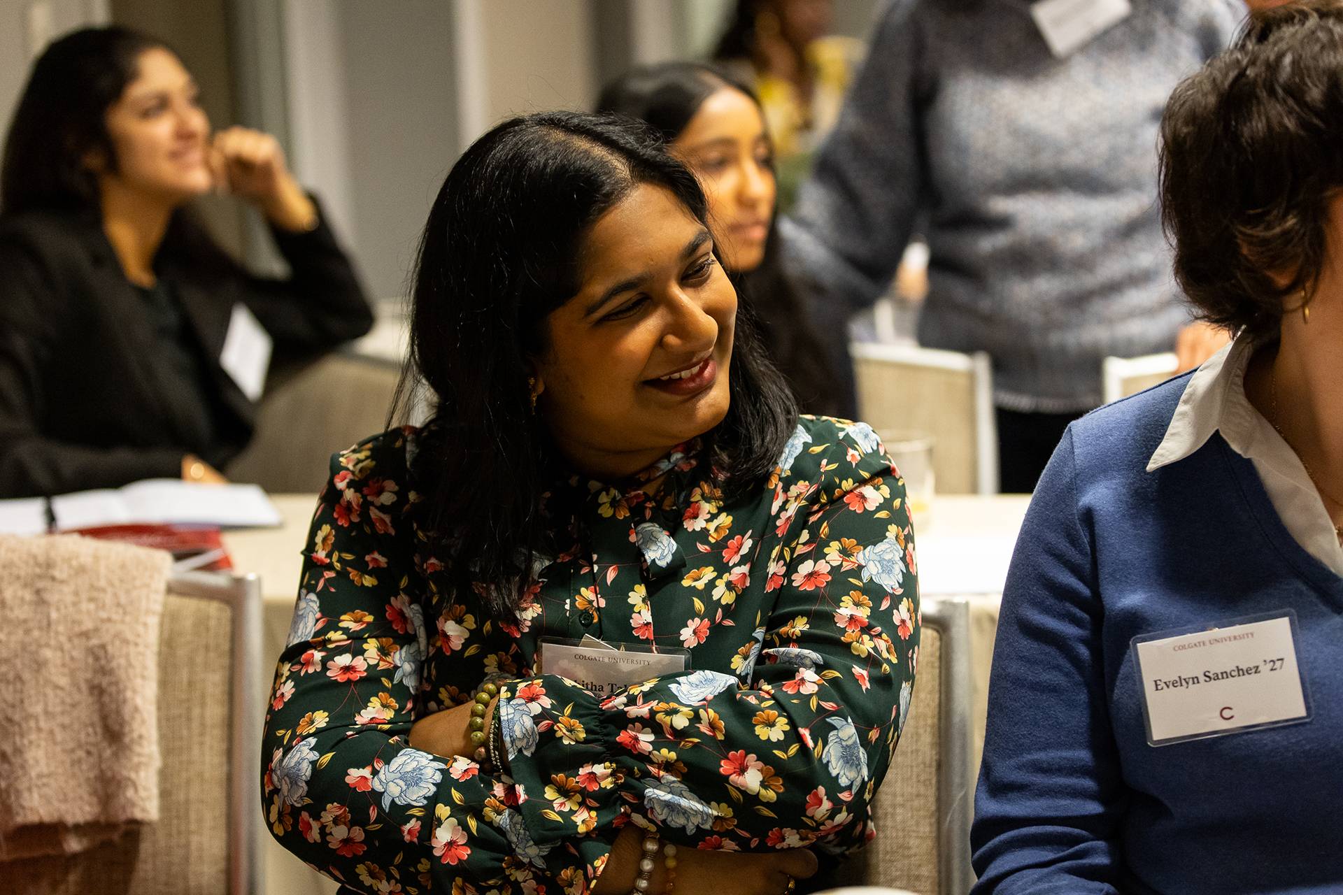 After Saturday morning workshops, everyone gathered for a final alumni panel. Panelist Meeann Dingman ’09 attributed her ability to adapt as a leader in the medical field to her liberal arts education, stating that Colgate taught her how to develop solutions in the face of uncertainty. Hughes underscored the importance of confidence in his journey to establish Devin C. Hughes Inc., and Jaia Thomas ’03 talked about her experience creating her company, Diverse Representation, and encouraged attendees to not be afraid to pursue their goals — no matter how grand.