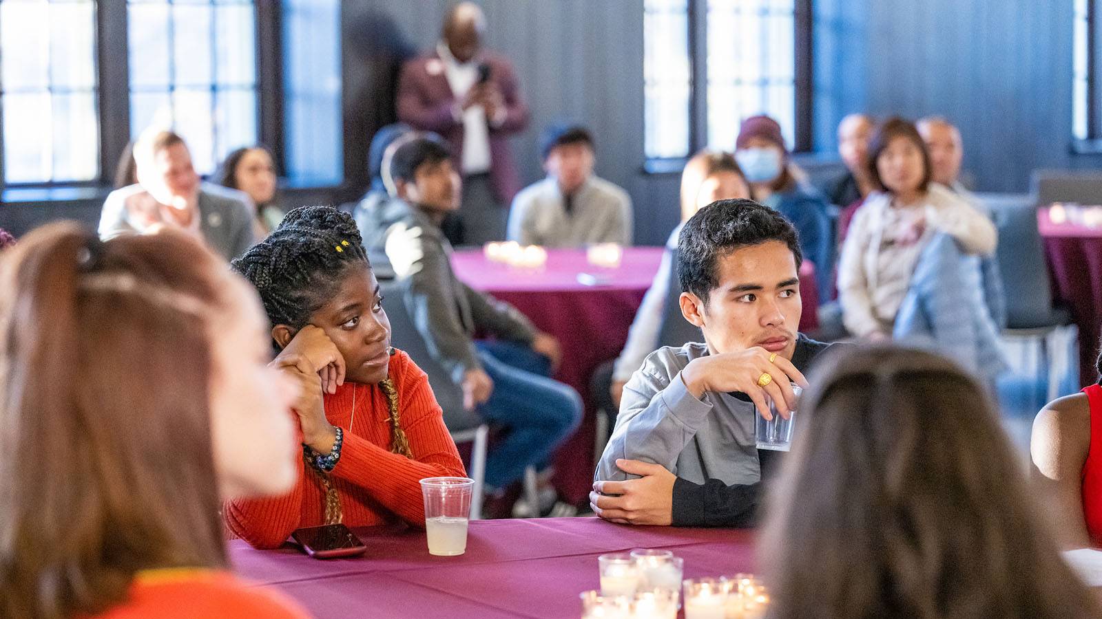 Students and their families attend the First Generation Dinner during Family Weekend.