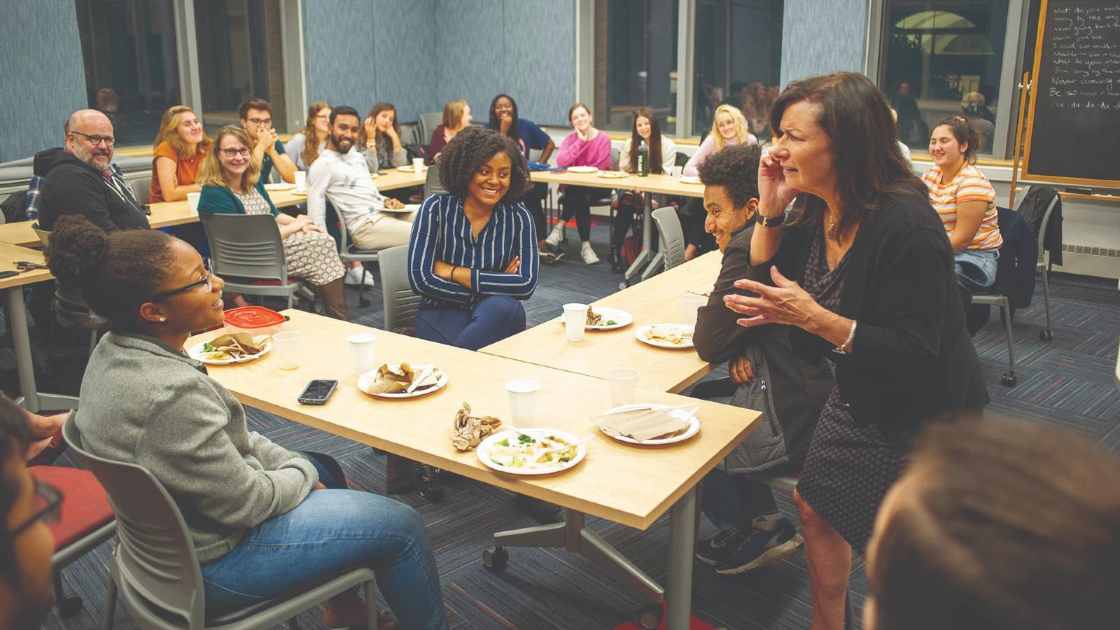 The Residential Commons system helps students develop the habits and skills that will enable them to meet the 13th goal of a Colgate education: the lifelong learner mindset that sustains curiosity and growth in knowledge and wisdom. Home for your first two years at Colgate, your commons placement is built around your academic interests. Students who select the same First Year Seminar (FSEM) course will be in a Residential Commons together.