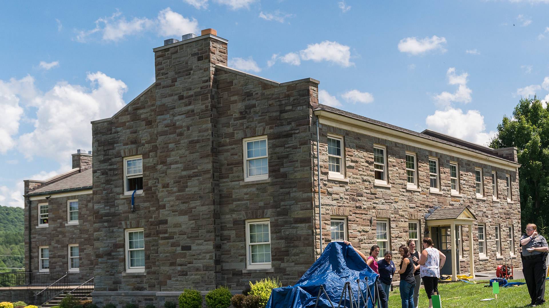 Gate House is a two-floor residence hall featuring traditional residence hall doubles and triples. Each room is individually climate-controlled with heat and air conditioning within a pre-set temperature range set for the building. There are laundry facilities on the first floor and a lounge on the second floor.