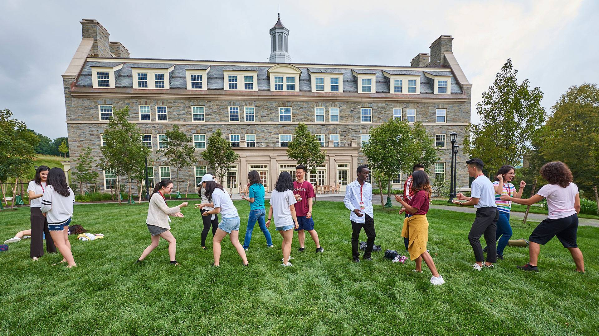 In this multistory residential facility, students reside in traditional double rooms on the three upper floors. Study lounges are available throughout the building. The first floor and ground level are dedicated to seminar rooms, classrooms, offices for the Residential Commons, and social lounges. There is also a small kitchen with scheduled open hours.