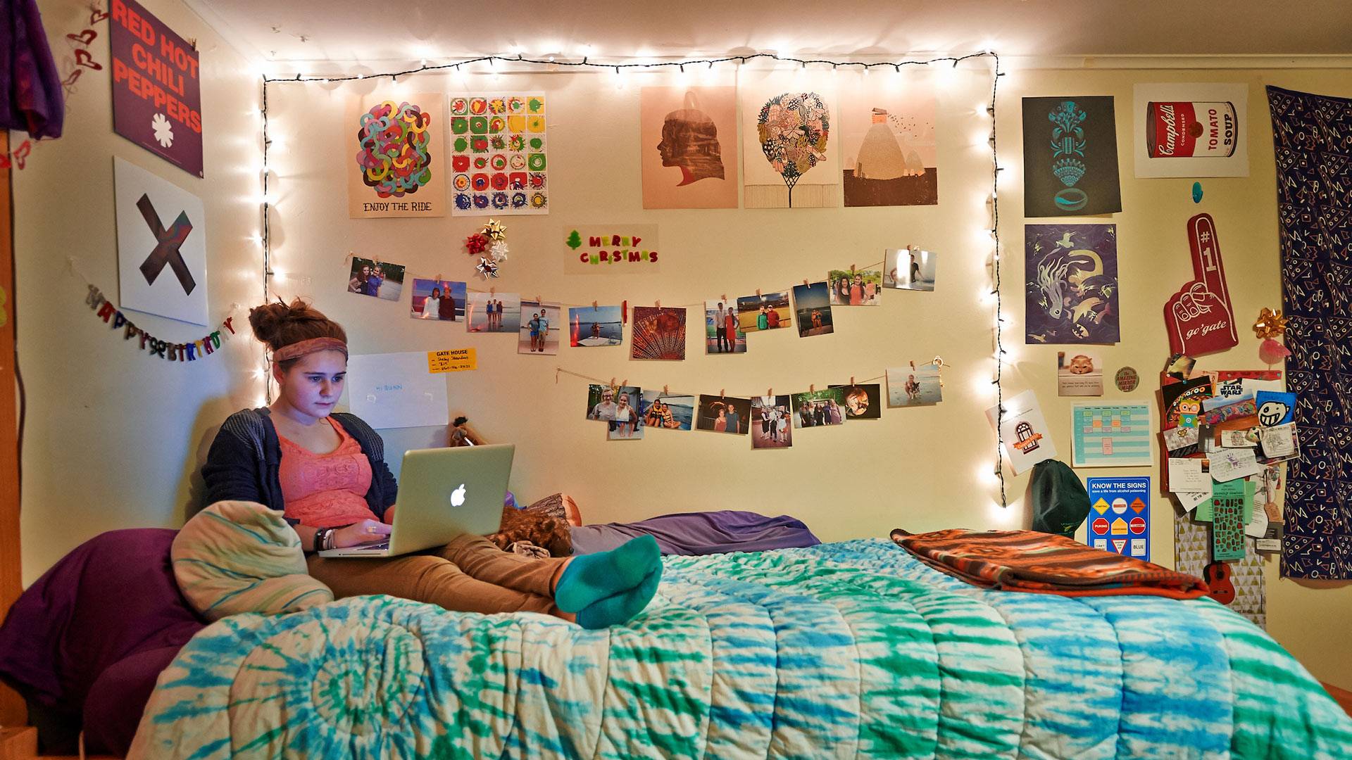 East Hall features primarily traditional residence hall double rooms with a small number of singles and triples. Laundry facilities are located on the first and third floors, and there is a lounge on the first floor. The Center for Women’s Studies is located on the ground floor, accessible via a separate entrance.