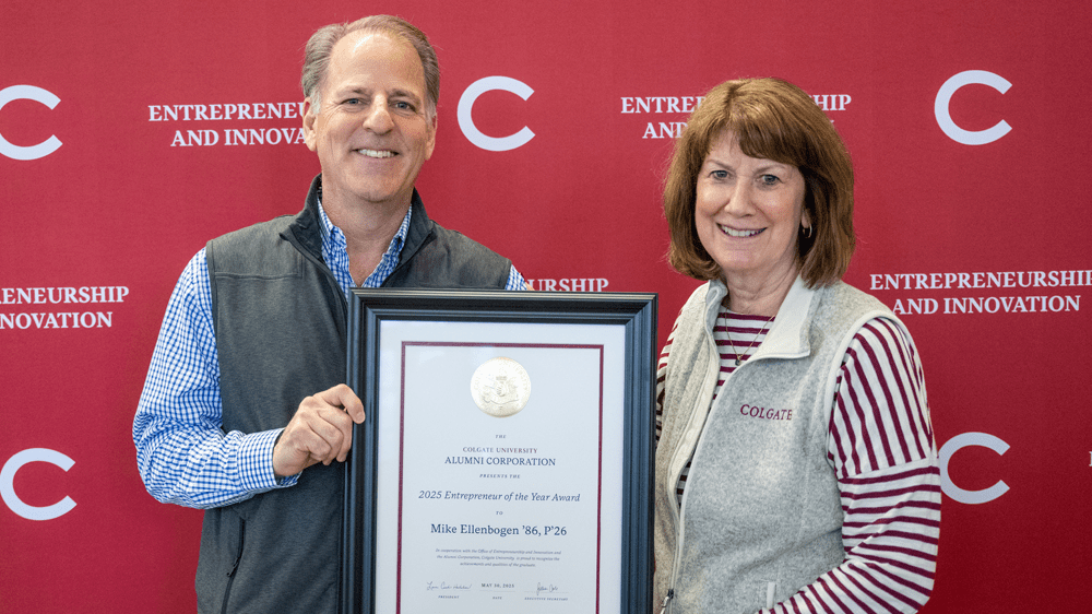 The annual Entrepreneur of the Year Award, given out by the Colgate University Alumni Council, recognizes the achievements and qualities of an alumna/alumnus who best exemplifies the ideals of entrepreneurship. Past award winners have been leading entrepreneurs in technology, education, consumer goods, and more. Nominations are welcome anytime to alumni@colgate.edu.