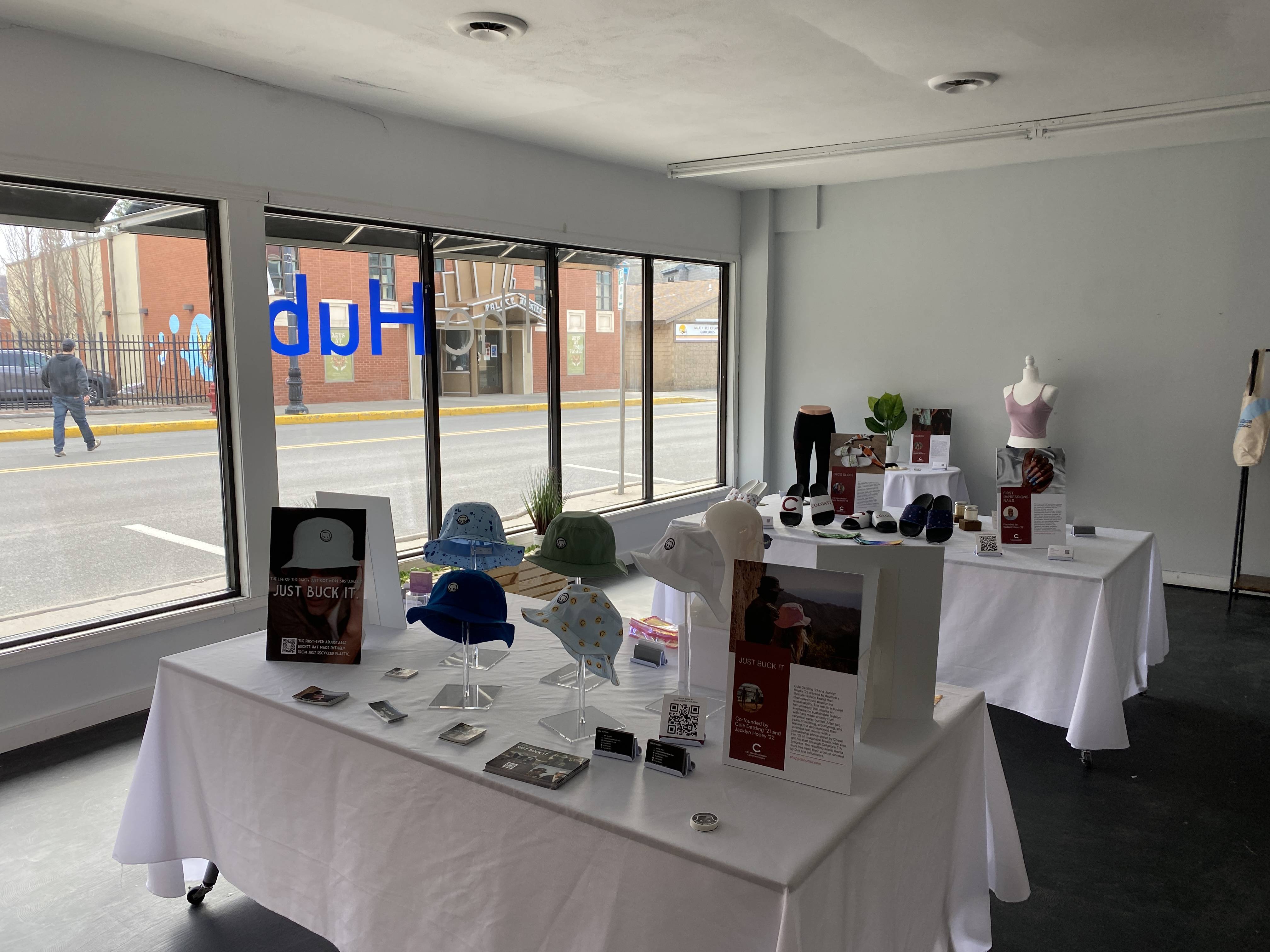 E&I will return to the pop-up shop from April through June 2024. In the meantime, the product displays of alumni businesses will be installed in the window to the right of the Hub.