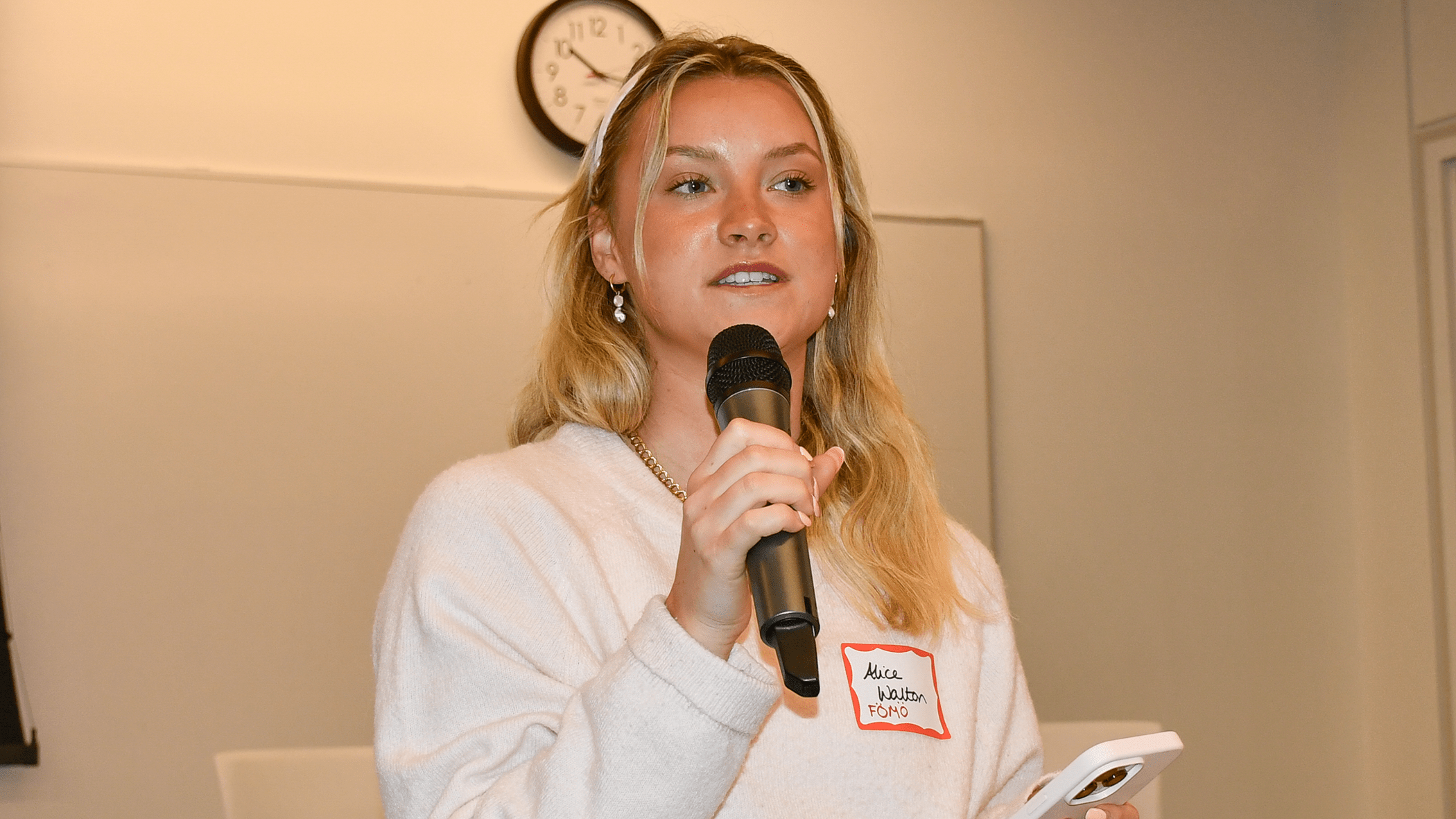 Alana Conolly ’27, another returning face who pitched on stage during the Entrepreneur Showcase in April, also spoke about the year ahead. “There’s a really good energy of people who are passionate, asking questions, and engaging in the program. I’m excited to see what ideas [EIR] Jen has and my new mentors.”